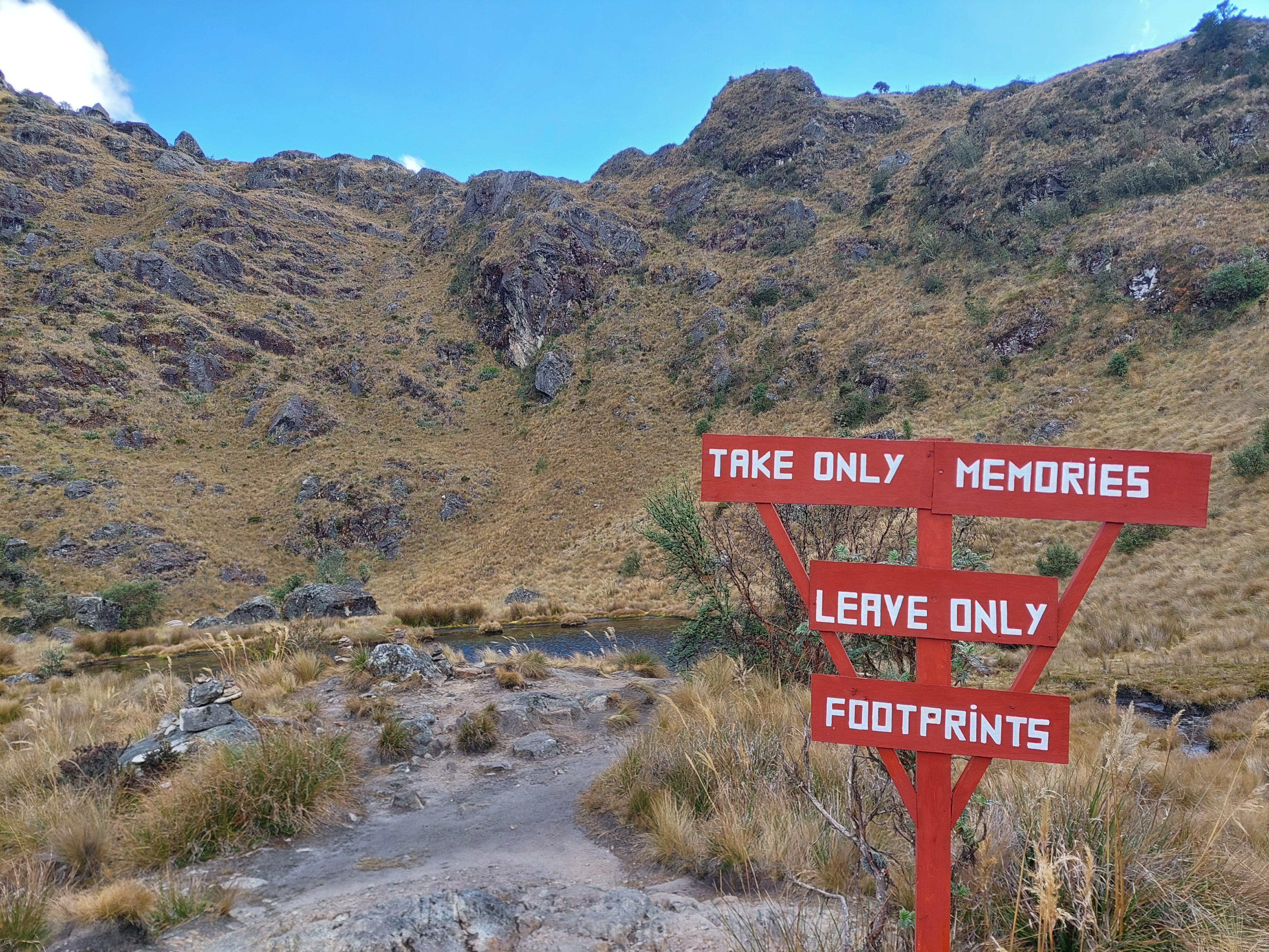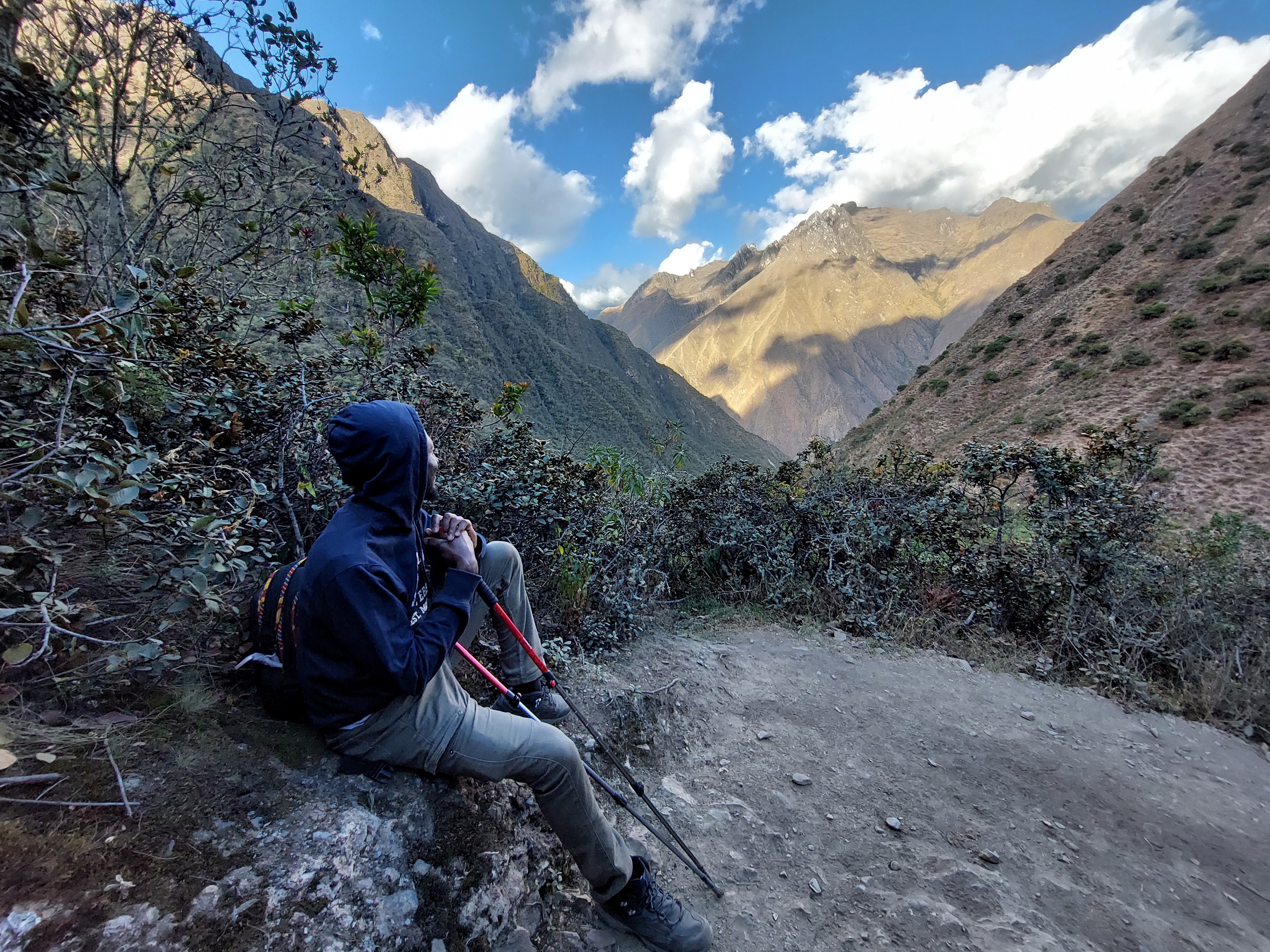 For me the hiking journey was the destination itself. I allowed myself to be enchanted by many things on the route including the flowers; butterflies; birds; the sedimentary profile of the mountain; the wild ‘pineapples’ growing on the mountains; the waterfalls springs and rushing streams; the llamas; the stones and boulders; and the very design of the hiking trail. There were certain moments on Day 2 that were really difficult for my oxygen deprived heart and body to keep going. It was amazing to see some of the porters running up the trail with heavy bags on the backs while I struggled along with a tiny backpack with barely 2kg of stuff. Given the high altitude runners of Ethiopian, Kenya and Uganda, I wondered why Peru with its high altitudes does not produce top athletes. I was told by two separate tour guides that this is mainly due to the lack of governmental support and the (un)availability of high quality facilities. For me, while heading up higher and higher the mountains I literally had to take it one steep step at a time: one heavy foot in front of the other, pause, breath, take in the view and take another step while trying not to look too far ahead of the route still to come.